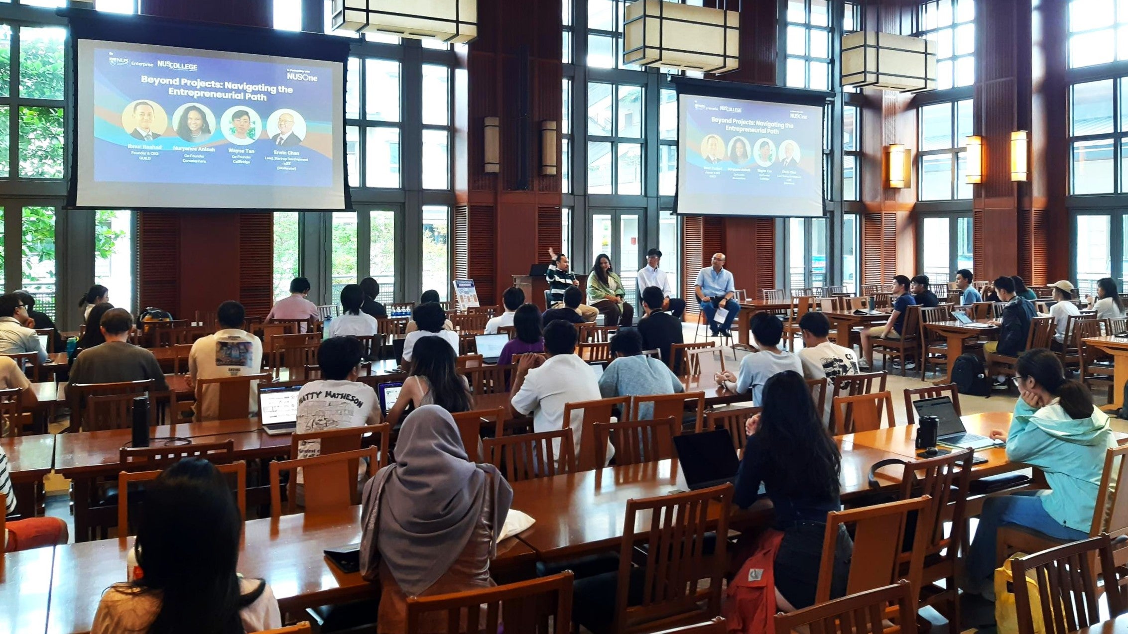 Two NUS students and one alumnus shared their entrepreneurship journeys and advice for aspiring founders in a panel discussion.