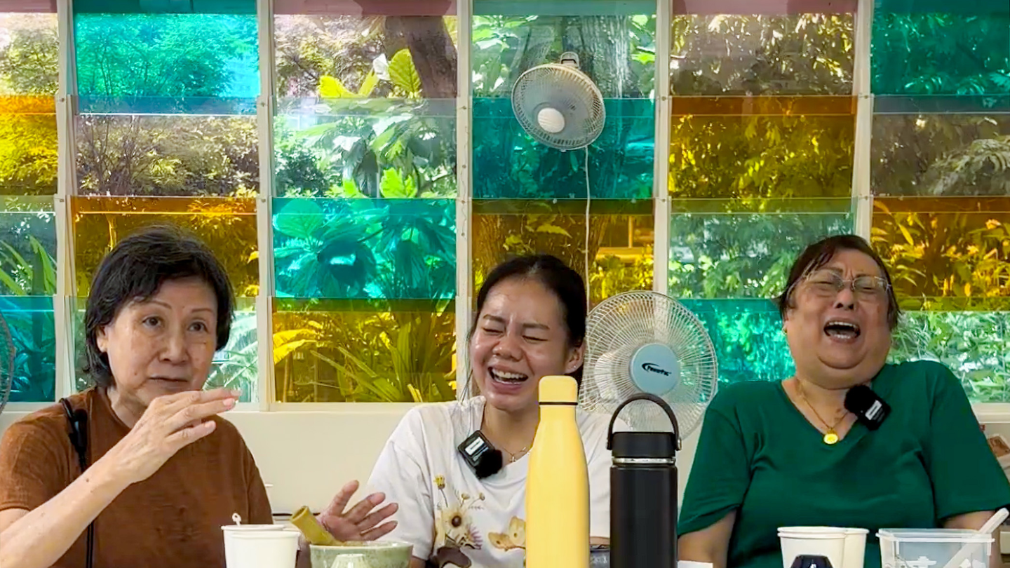 NUS student Elicia Ng (centre) sharing a light-hearted moment with residents of Health District @ Queenstown.